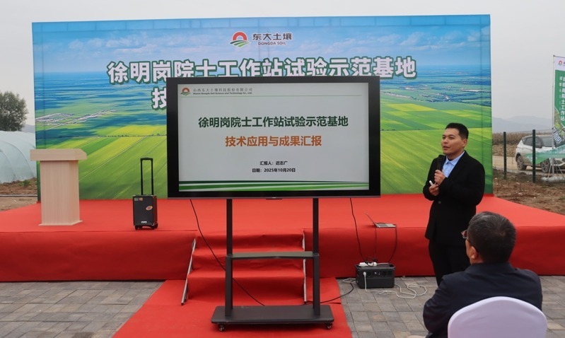 東大土壤研發(fā)總監(jiān)遲志廣就徐明崗院士工作站試驗示范基地的技術應用與成果進行匯報。他介紹,基地成功集成并示范推廣了合理密植、水肥一體化精準調控及病蟲害綠色防控等一系列先進適用技術,有效實現(xiàn)了玉米作物產(chǎn)量與品質的雙重提升,為區(qū)域農(nóng)業(yè)綠色高質量發(fā)展提供了堅實的技術支撐與可復制的實踐模式。