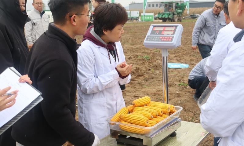 山西省種業(yè)發(fā)展中心研究員姚宏亮對測產(chǎn)取樣標準和機器實收流程進行了專業(yè)講解,并現(xiàn)場公布了測產(chǎn)結果。他表示,本次測產(chǎn)嚴格遵循國家技術規(guī)程,通過規(guī)范取樣與機械化實收核驗,最終數(shù)據(jù)顯示:示范基地玉米平均畝產(chǎn)達1003.8公斤,對照田玉米平均畝產(chǎn)為855.2公斤,玉米增產(chǎn)率達17.4%,充分驗證了東大集成新技術的顯著增產(chǎn)效果。